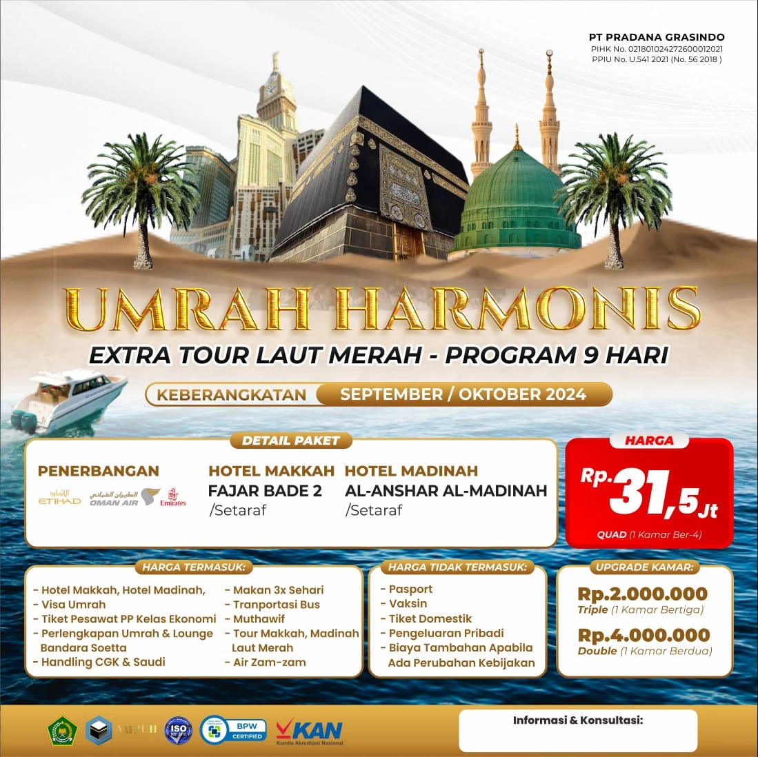 Harga yang terjangkau dan fasilitas yang komprehensif membuat paket ini menjadi pilihan ideal bagi jamaah yang mencari pengalaman umroh yang lebih berarti